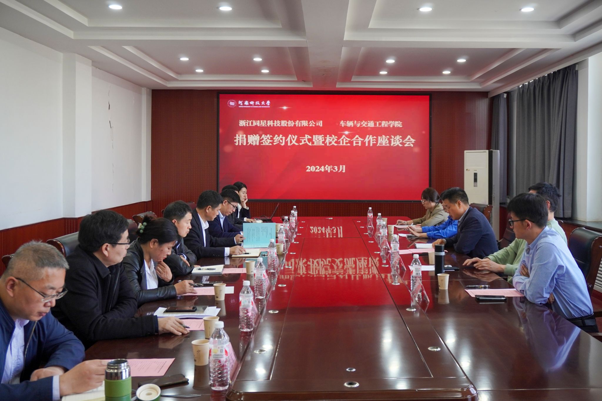 校新闻中心讯 近日,浙江同星科技股份有限公司与网投官网捐赠签约仪式暨校企合作座谈会在车辆与交通工程学院举行。新昌县人力资源和社会保障局党组成员、办公室主任徐益军,新昌县人才服务中心主任郑卫华,浙江同星科技股份有限公司管理部长张巧,十大网投正规信誉官网车辆与交通工程学院院长徐立友及网投官网相关部门负责同志参加签约仪式。签约仪式由车辆与交通工程学院党委副书记陈建峰主持。