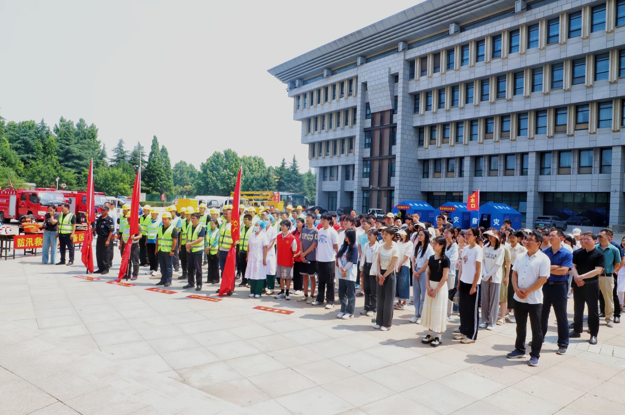 上午10时,防汛救灾应急演练物资、人员全部就绪,演练开始。巡视值班人员发现学生宿舍人员被困、地下室及下沉广场积水严重、水系雨水大量漫出安全线等险情,立即向学校防汛指挥部报告,防汛领导小组立即启动防汛应急预案,进入防汛应急程序。应急抢险组、师生疏散组、医疗救援组、物资保障组等150余人火速集结,迅速进行抢险救援物资分发、紧急排水、排查电力、地下车库防汛抢险堆放沙袋、疏散师生、救援被困人员、校园清洁消杀……演练紧张有序,急而不乱,历时一个小时圆满结束。