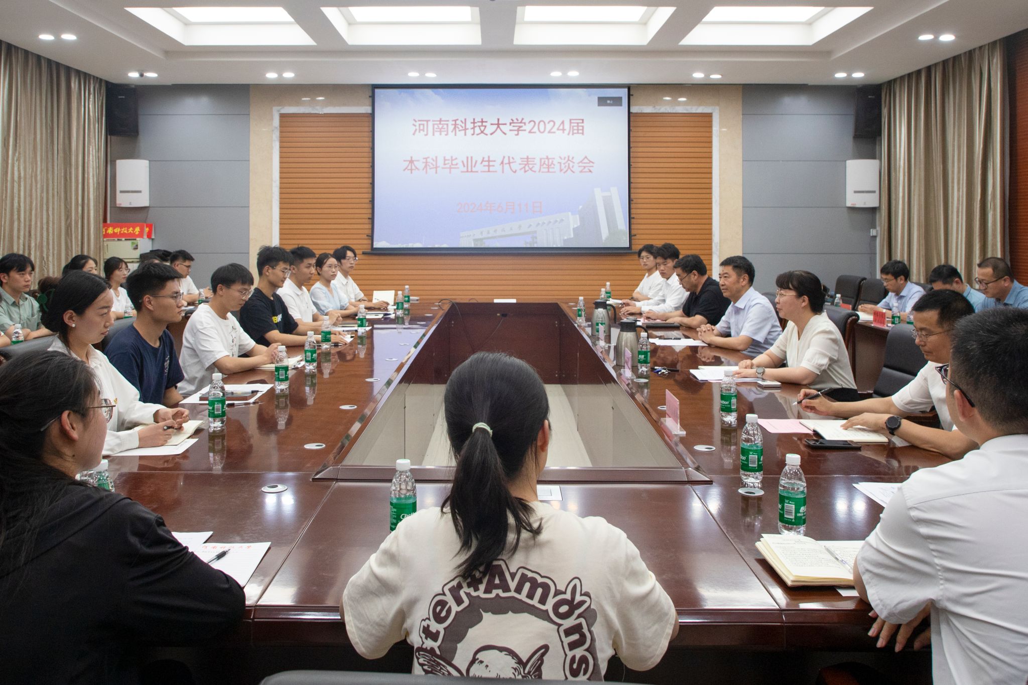 座谈会上,23名本科毕业生先后分享了大学生活给自己带来的成长收获和对未来发展的思考。