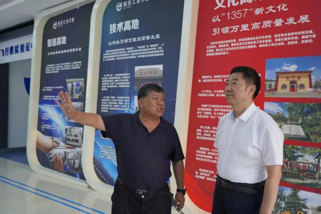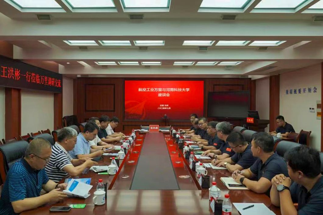 校新闻中心讯 7月16日,党委书记、校长王洪彬带队到航空工业万里公司进行考察调研。航空工业万里公司党委书记、董事长晁世元,副总经理王许太出席考察调研。