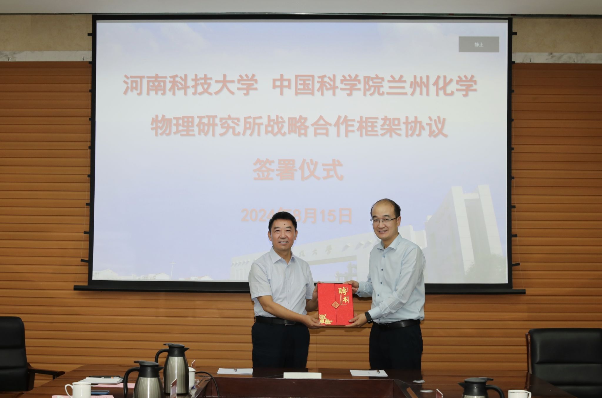 校新闻中心讯 8月15日,学校与中国科学院兰州化学物理研究所战略合作框架协议签署仪式在博园第一会议室举行。中科院兰州化学物理研究所党委书记王齐华,中科院兰州化学物理研究所所长、党委副书记周峰,党委书记、校长王洪彬,党委副书记、工会主席杨霞,副校长王学峰出席仪式。